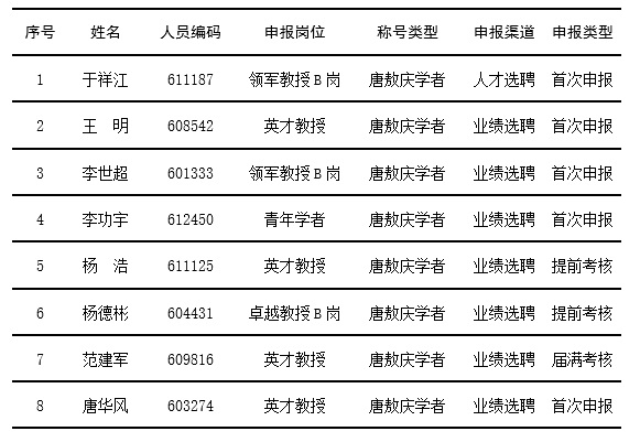 “匡亚明/唐敖庆学者”人才岗位聘任实施细则(修订)》(校发〔2023〕82号),经个人申报,欧洲杯组织对申报材料进行真实性审核,于2026年3月5日-11日分别召开教学委员会、学术委员会、党委会和党政联席会,对申报人的政治表现、师德师风、教育教学、人才培养、科学研究和违规违纪违法等情况做综合鉴定,通过于祥江等8人申报“唐敖庆学者”人才岗位,现将申报人材料在113-1办公室进行公示,公示期为5个工作日(2026年3月13日-19日)。